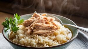 Slow-Cooked Shredded Chicken with Bone Broth Rice | Comfort Meal with 45g Protein